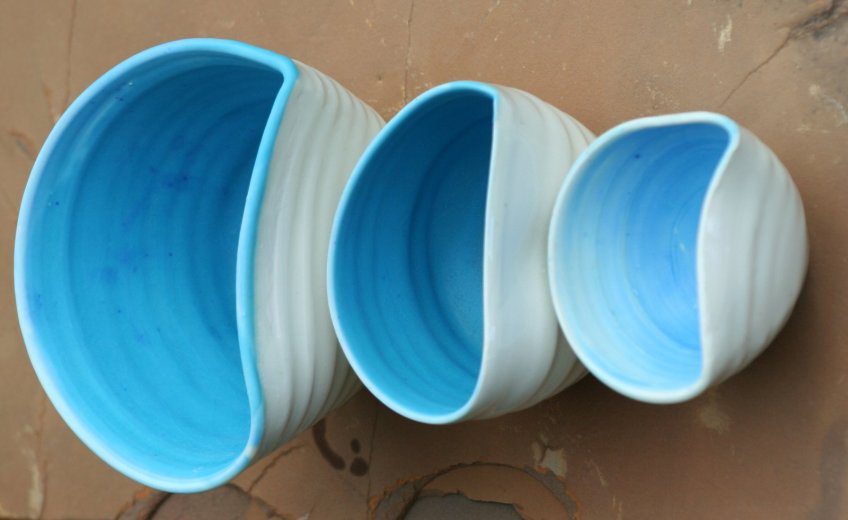 soft bowls Published January 11, 2013 at 1600 × 982 in Studio Pottery pocelain with interior glaze of copper blue. Like Loading...